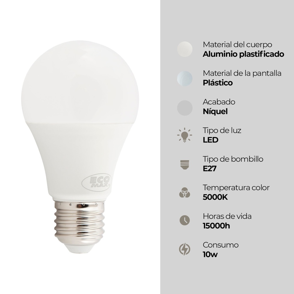 Foco LED Tipo A60 Integrado 10w Luz Blanca 5000k Socket E27 3 set